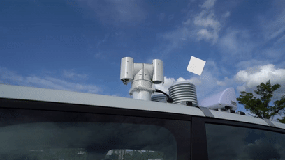 车顶配备国内知名品牌车载扬尘监测装置及360°摄像头,实时检测并反馈周围环境中的PM2.5、10及噪声值,摄像头记录现场。